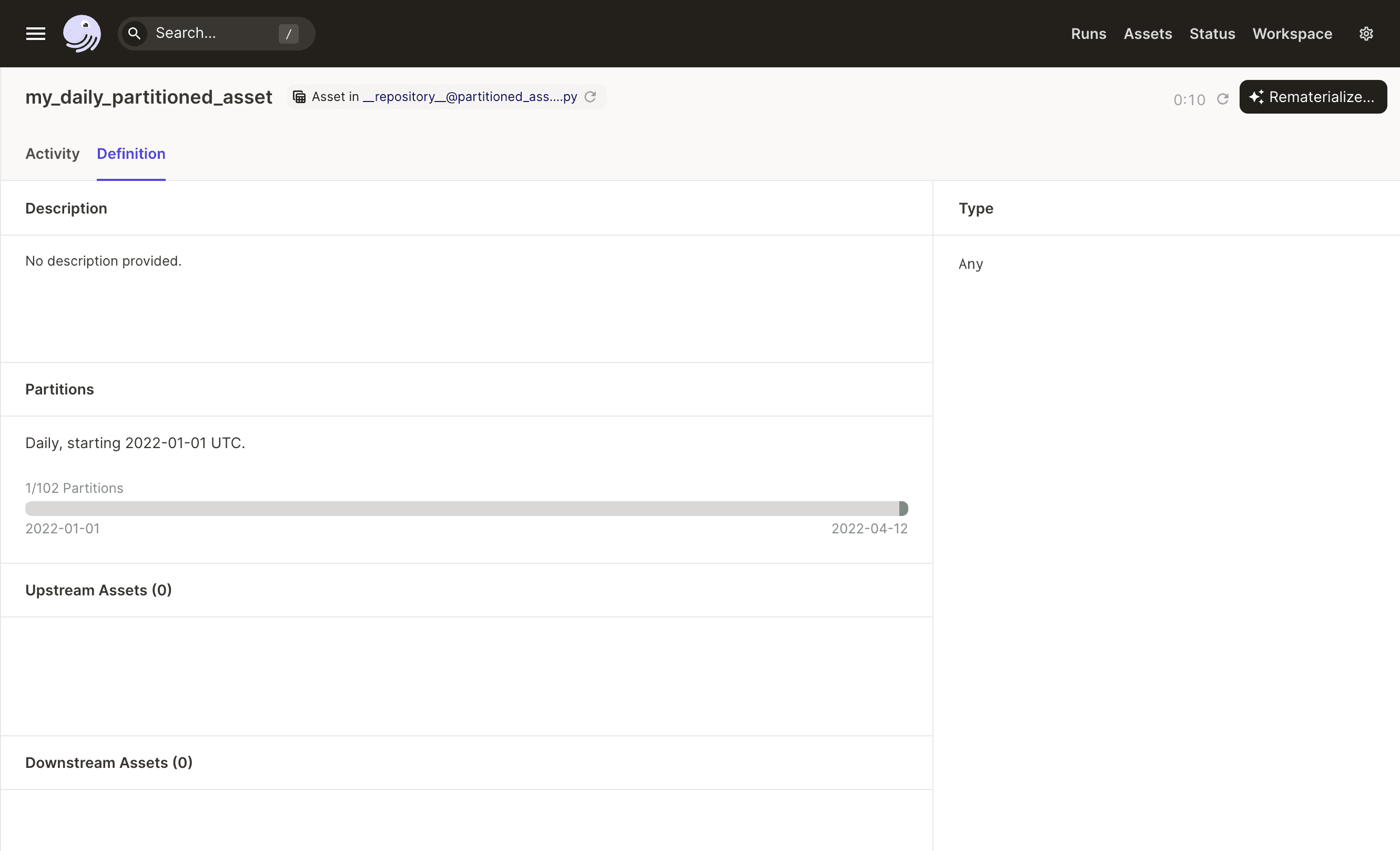 This page is specific to asset definitions. Looking for ops? Refer to the Partitioned ops documentation.